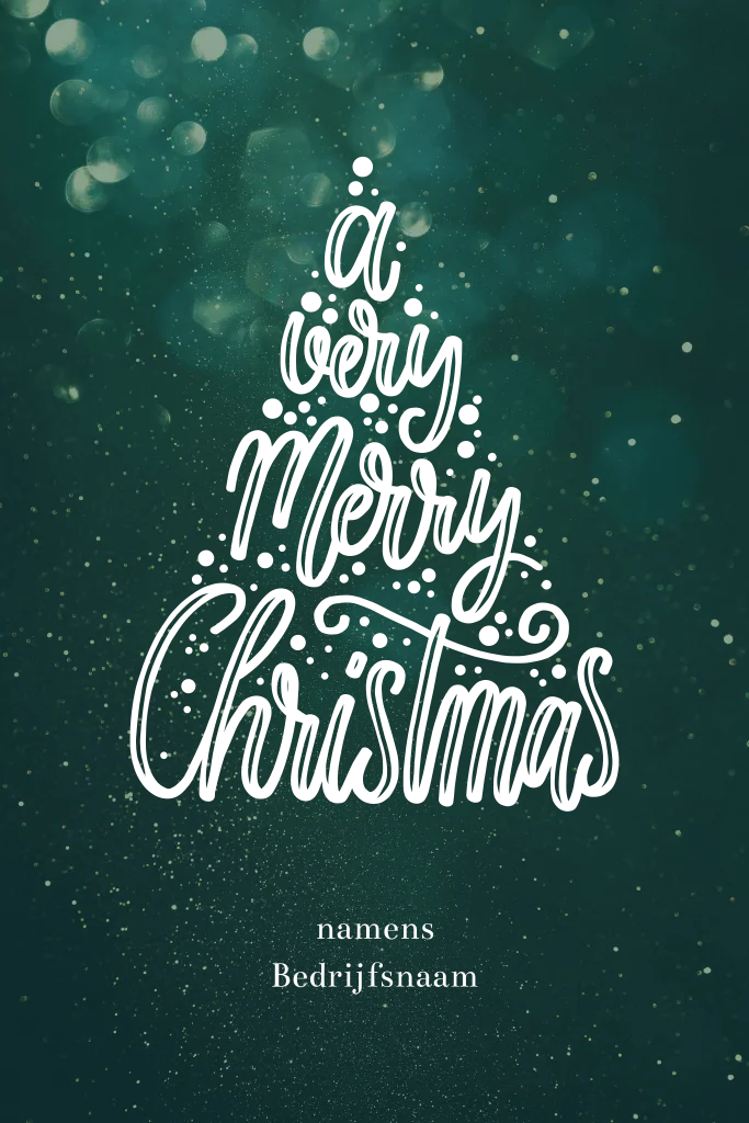 Stijlvolle en feestelijke kerstkaart met koperfolie kerstboom en typografie op een donkergroene achtergrond. Wens al uw zakelijke contacten prettige feestdagen en een gelukkig nieuwjaar toe met dit prachtige kaartje. Liever goudfolie? Pas dit ontwerp zelf aan in onze editor.