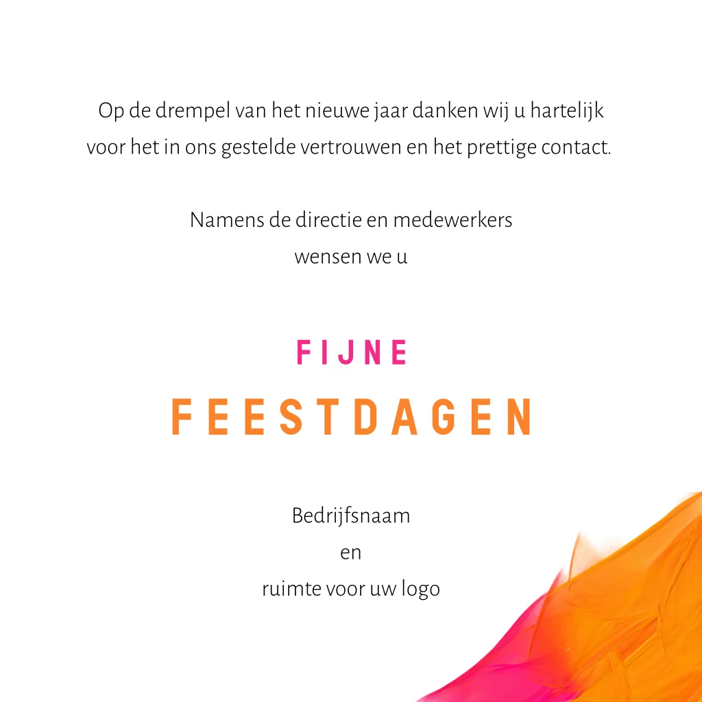 Kleurrijke kerstkaart met oranje-roze verfveeg en 2026
