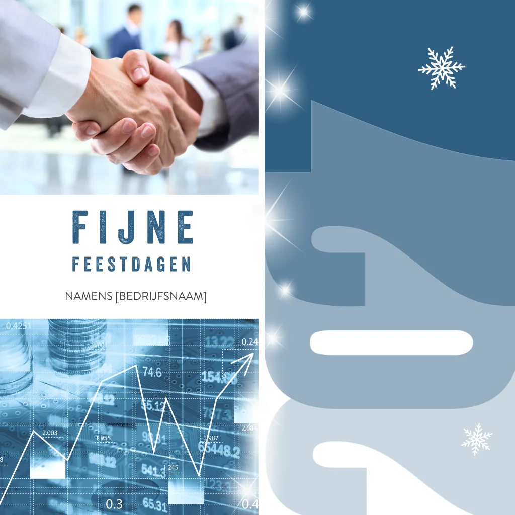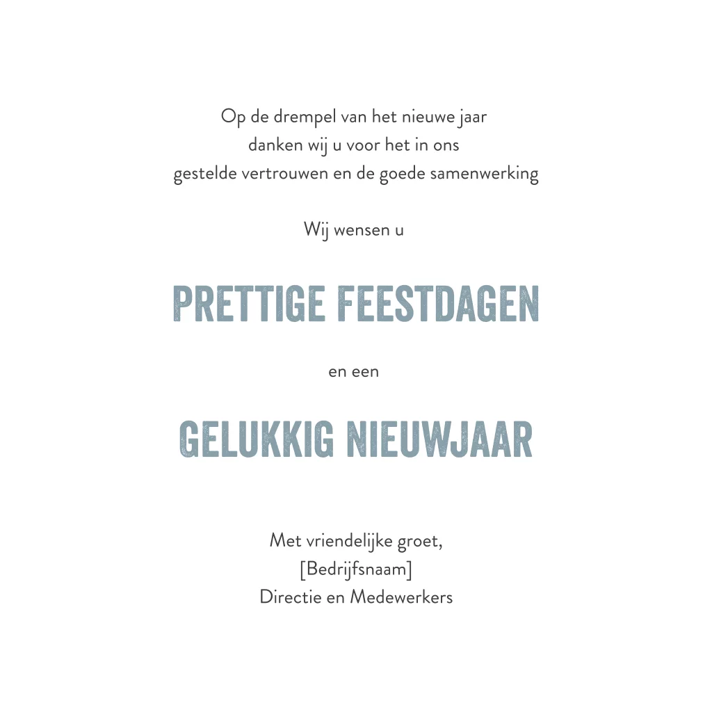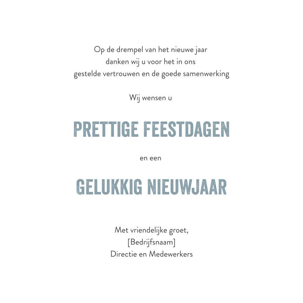 Ben je op zoek naar een kerstkaart die je naar je werknemers, zakenrelaties of klanten gaat sturen? Dan is deze kaart misschien wel wat je zoekt. Op deze kaarten is ruimte voor twee eigen foto's, dat geeft je kaart meteen een persoonlijke touch. Daarnaast is het mogelijk om de lettertypes en kleuren te wijzigen in onze online editor. Is je ontwerp naar wens? Bestel dan een proefdruk om de kaart in het echt te bekijken.