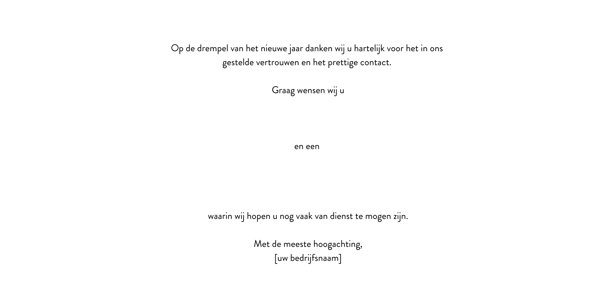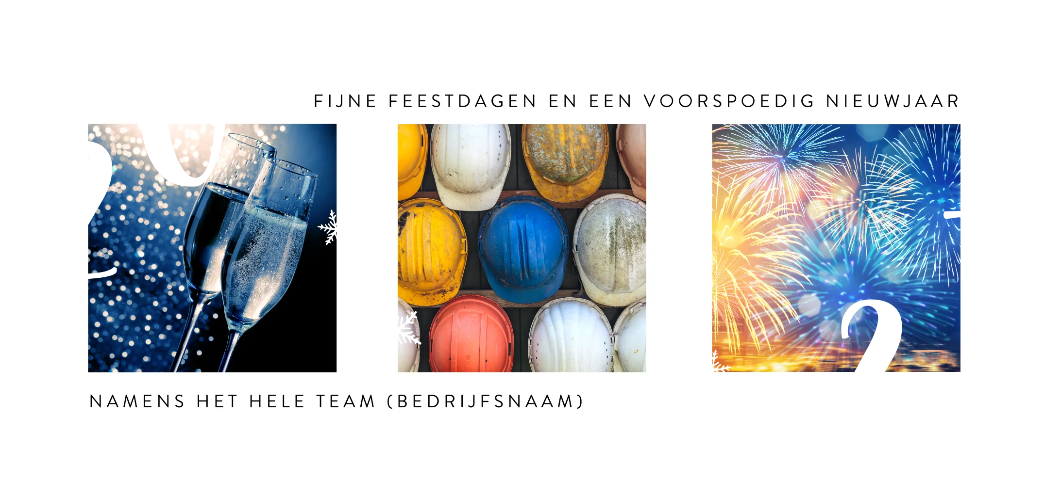 Deze zakelijke kerstkaart voor de bouwsector is de perfecte manier om uw zakelijke partners en klanten te laten zien dat u hun inzet waardeert en de waardevolle samenwerking erkent. Deze kaart is ontworpen met uw branche in gedachten en straalt professionaliteit uit, wat belangrijk is voor het behouden van sterke zakelijke relaties. Het glimmende jaartal en de ijssterren in goudfolie zorgen voor een feestelijk en chique tintje. Pas de boodschap aan de binnenzijde zelf aan voor een persoonlijke kerstgroet aan al uw zakelijke contacten.