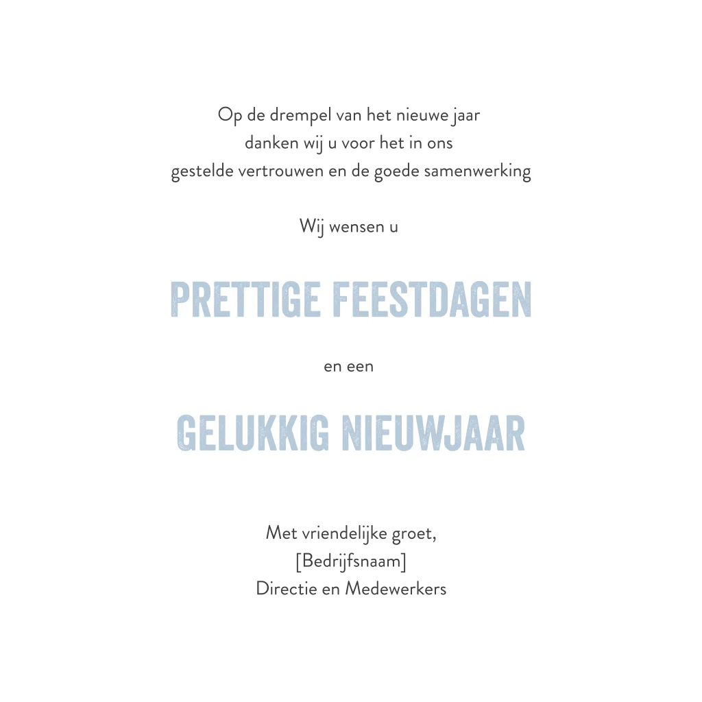 Vierkante, dubbele kerstkaart met verschillende foto's die met de bouw te maken hebben. Vervang de afbeeldingen om een eigen draai te geven aan het ontwerp. Rechts zie je het jaartal 2026. Links kun je onder 'Fijne Feestdagen' de naam van je bedrijf plaatsen. Zijn de aanpassingen naar wens? Bestel dan een proefdruk.
