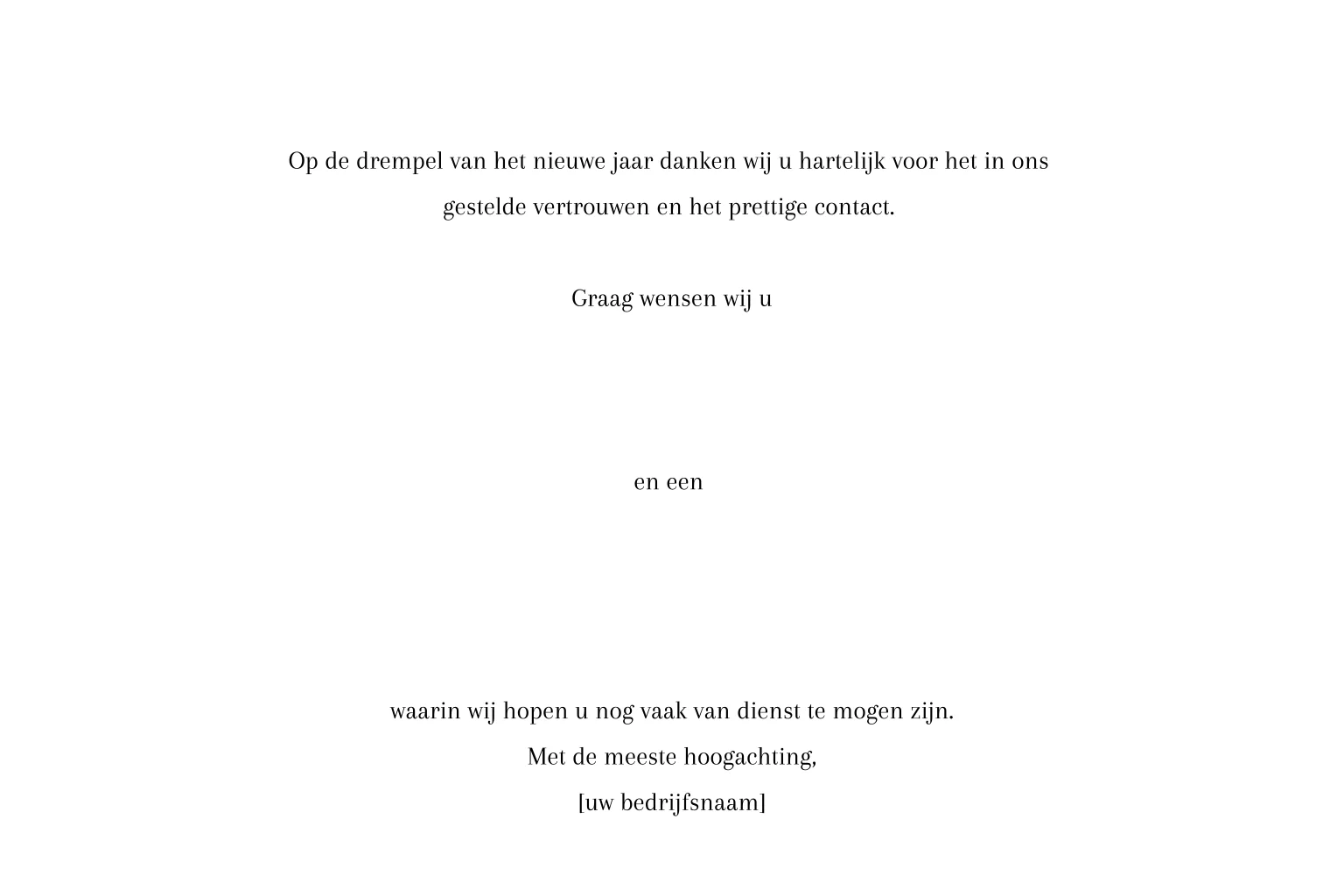 Deze stoere zakelijke kerstkaart is perfect voor bouwbedrijven, aannemers en projectontwikkelaars. Met de illustratie van een huis en sleutel gedrukt met goudfolie wens je klanten en relaties een sterk en succesvol nieuwjaar. De kaart benadrukt vakmanschap, betrouwbaarheid en een frisse start voor het komende jaar. Ideaal om waardering te tonen en de band met klanten en partners te versterken tijdens de feestdagen.