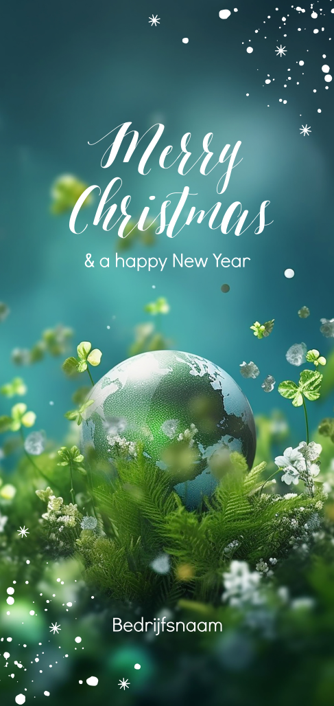 Geef dit kerstseizoen een betekenisvolle draai aan uw zakelijke groeten met deze groene kerstkaart, voorzien van een prachtige wereldbol. De wereldbol op deze kaart symboliseert niet alleen de wereldwijde verbondenheid, maar ook uw inzet voor milieubewustzijn en duurzaamheid. Door te kiezen voor deze kaart laat u zien dat uw bedrijf verder kijkt dan de dagelijkse activiteiten en zich graag inzet voor een groenere toekomst.