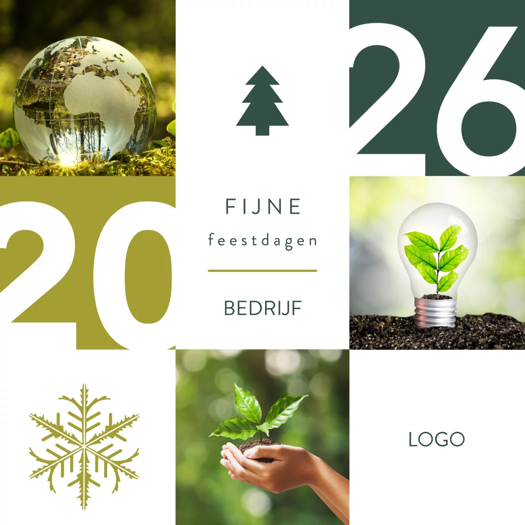 Kerstkaart milieu met 2026, foto's en groene vlakken
