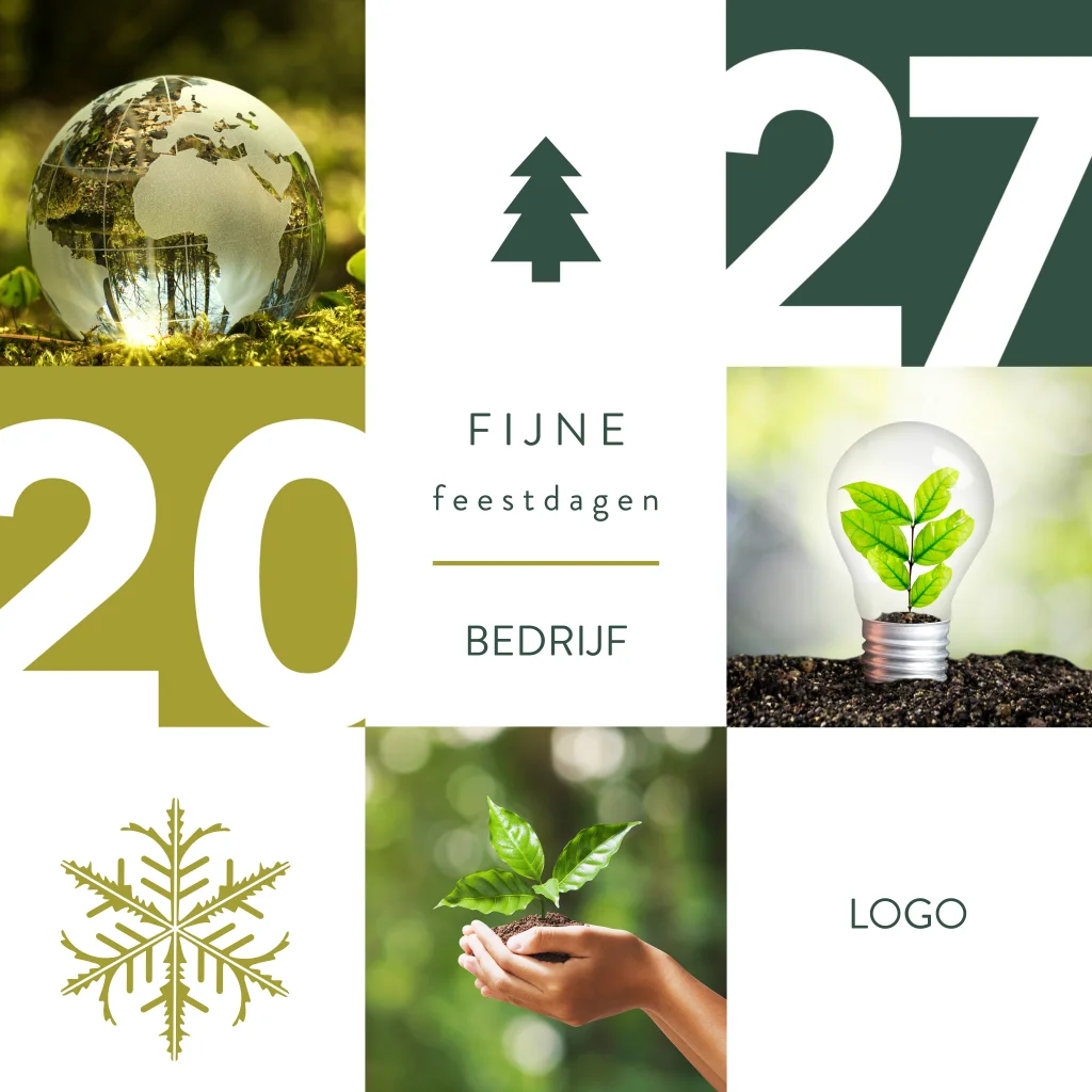 Kerstkaart milieu met 2027, foto's en groene vlakken