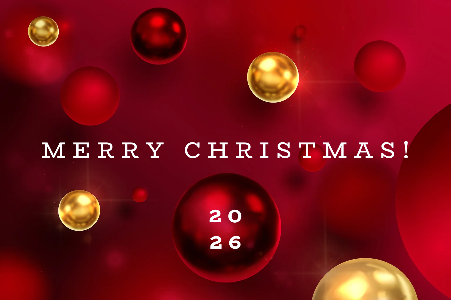 Voeg een vleugje elegantie toe aan uw kerstgroet met onze prachtige rode chique kerstkaart. Deze kaart is voorzien van stijlvolle abstracte kerstballen in rood en goud, wat zorgt voor een feestelijke en toch ingetogen uitstraling. Verstuur deze kaart om warme kerstwensen over te brengen op een verfijnde en smaakvolle manier. Pas de tekst aan om de kaart verder te personaliseren.
