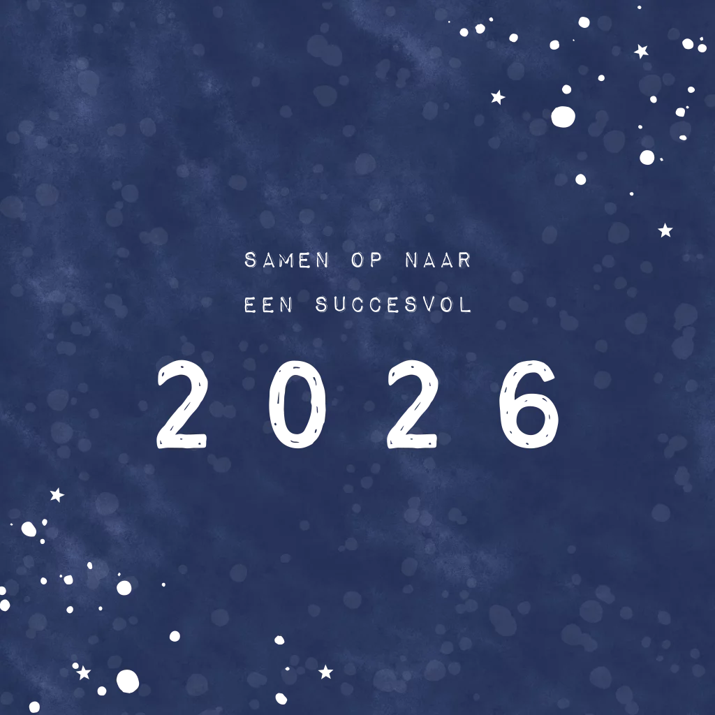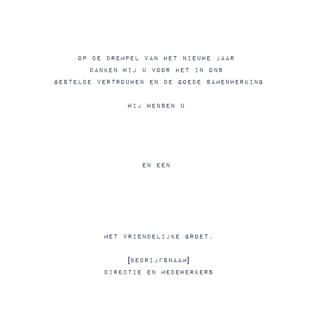 Samen op naar een succesvol nieuwjaar! Met deze donkerblauwe zakelijke kerstkaart wenst u al uw contacten een prettig nieuwjaar toe. Pas deze kaart zelf aan in onze ontwerptool.