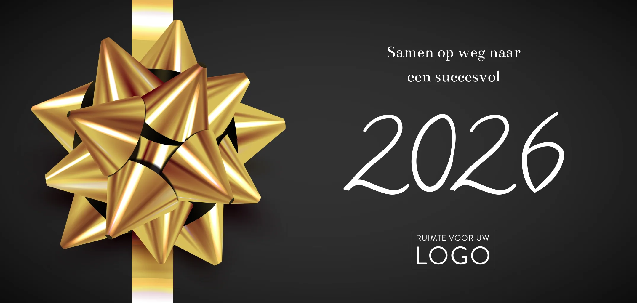 Dit kerstseizoen is het moment om indruk te maken. Laat uw zakelijke relaties weten dat u ze waardeert met een vleugje elegantie en glamour. Deze zakelijke kerstkaart is de belichaming van verfijning, met een gouden strik en foliedruk typografie die uw groeten onvergetelijk maken. Plaats uw logo voorop om deze kaart te personaliseren.