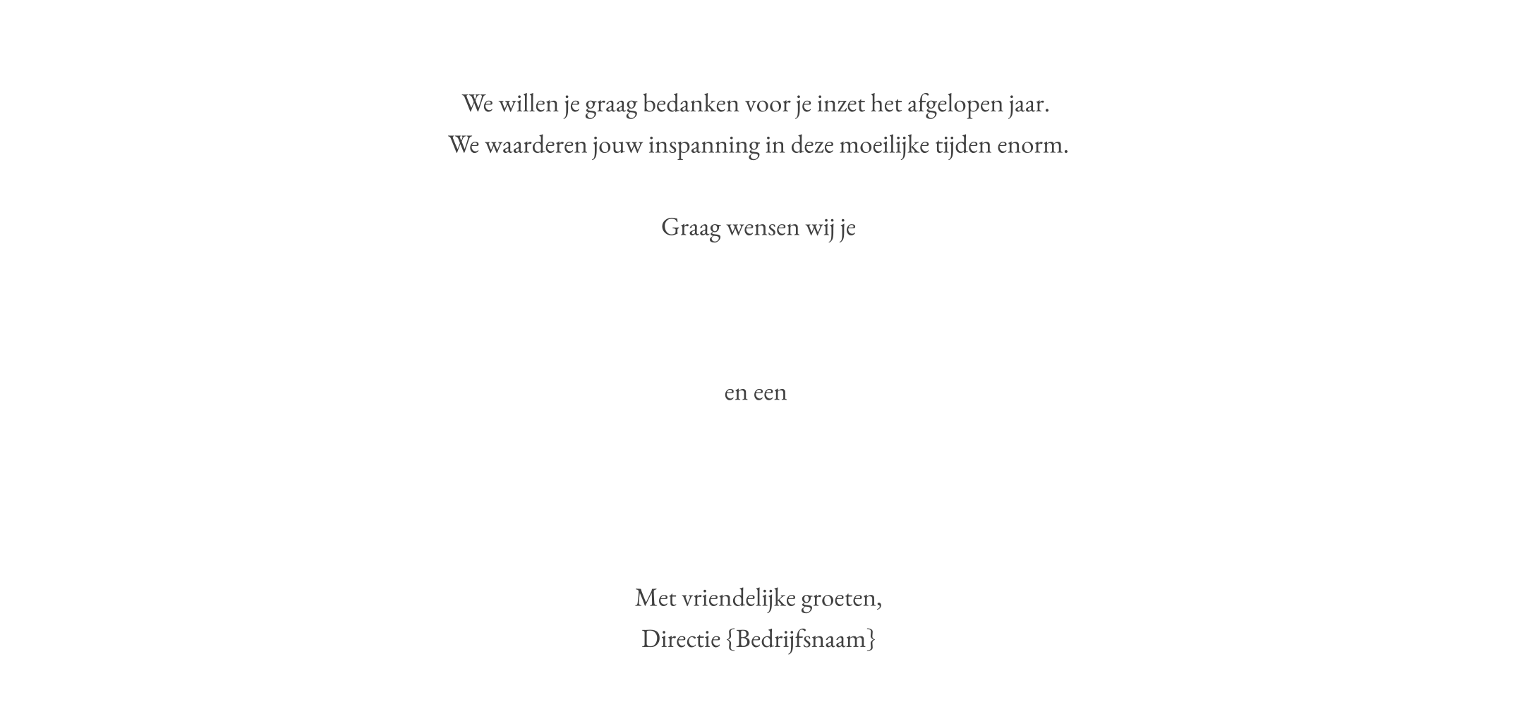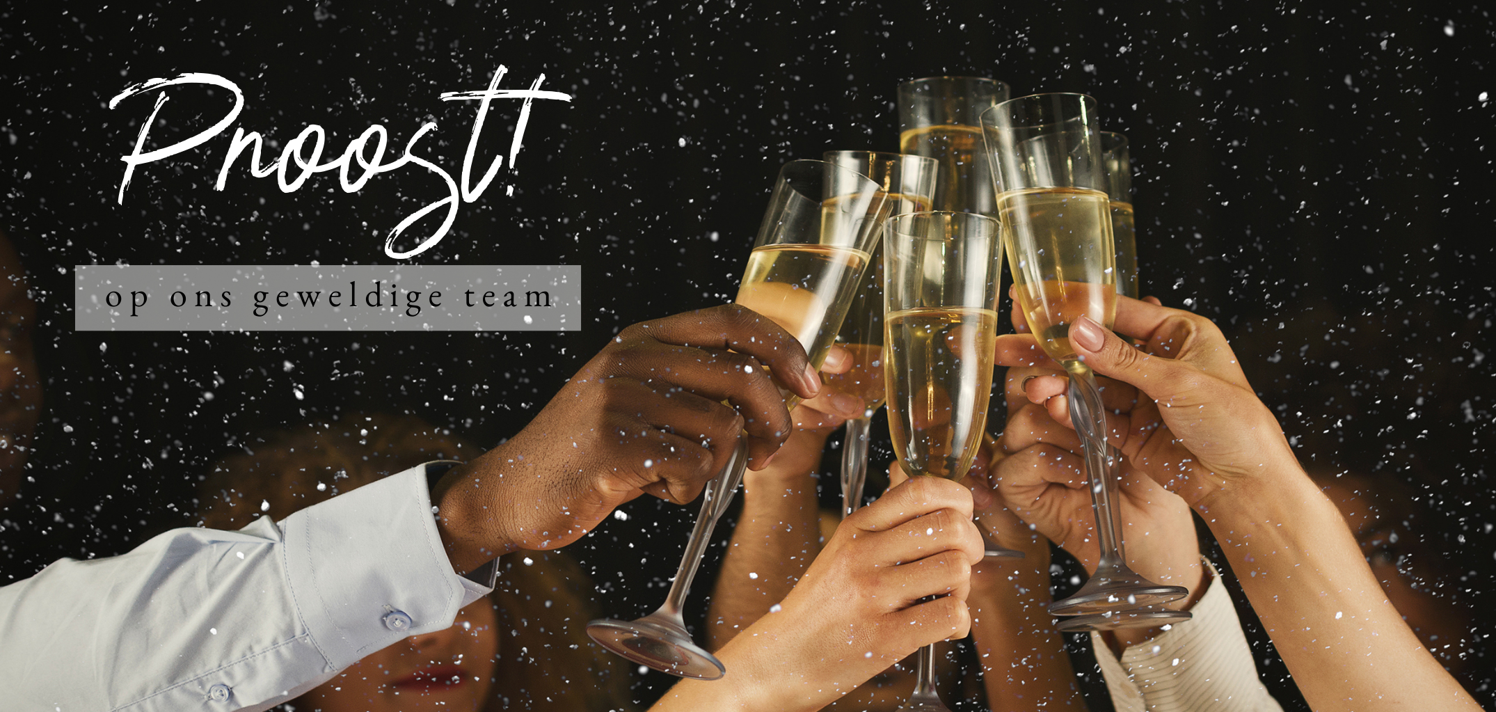 Op zoek naar een hippe kerstkaart om alle medewerkers te bedanken voor hun inzet. Deze langwerpige kerstkaart is hip en stijlvol tegelijk door de combinatie van de mooie foto en het gebruik van goudfolie. Met grote gouden letters staat er proost op de voorzijde. Met deze kerstkaart wens je werknemers fijne feestdagen in stijl. Bestel een drukproef om het resultaat in het echt te beoordelen.