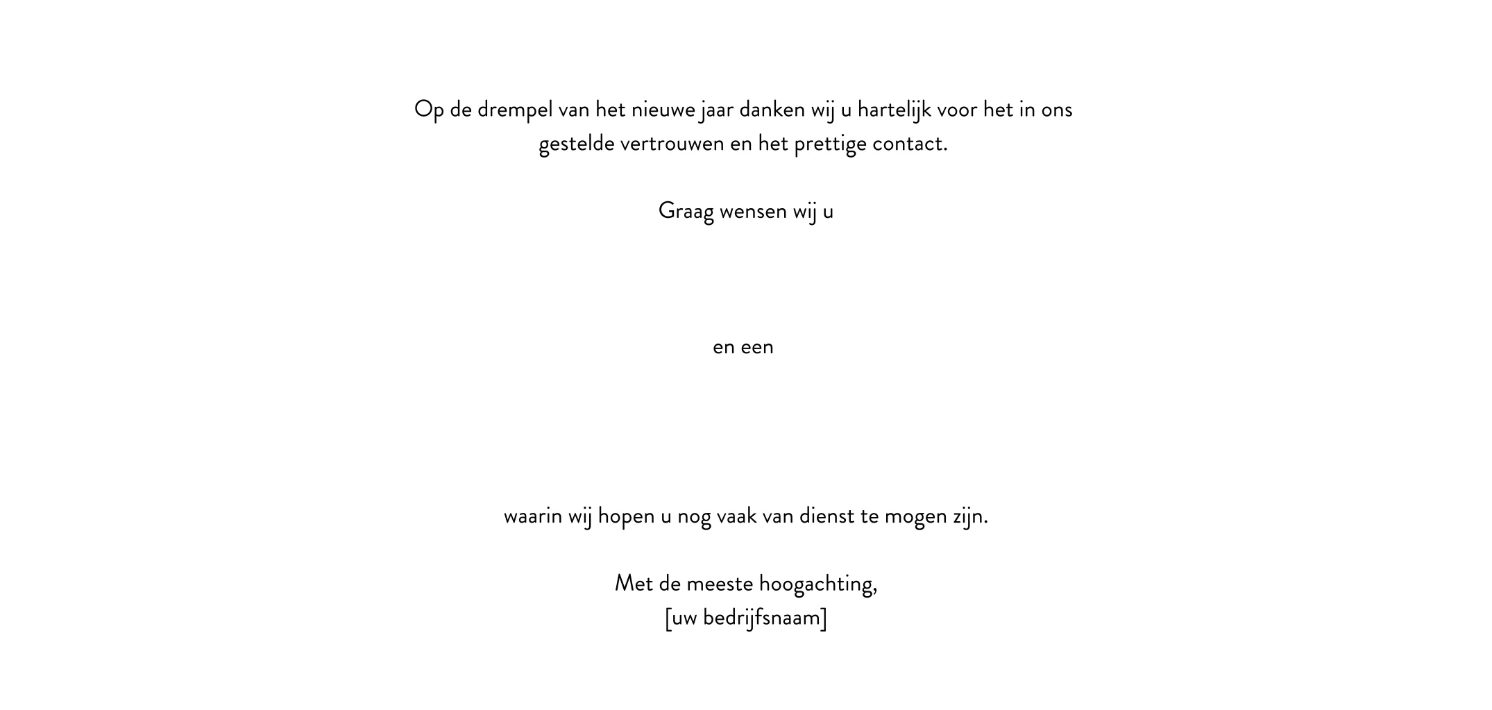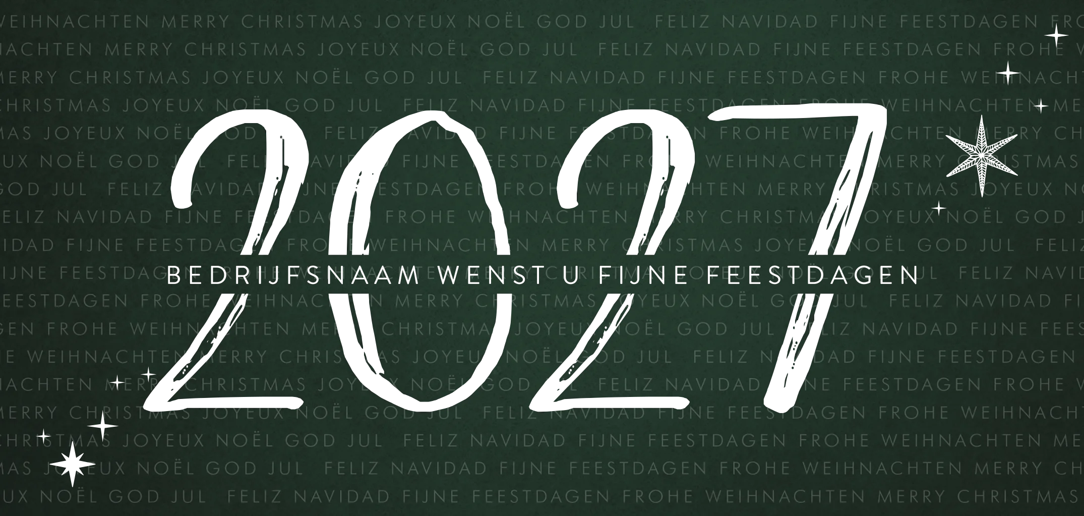 Langwerpige kerstkaart met het jaartal 2027 in goudfolie. Door het jaartal loopt de kerstwens. De strakke en sierlijke typografie geven de kaart een frisse en stijlvolle uitstraling. Aan de binnenkant kunt u het bedrijfslogo plaatsen.