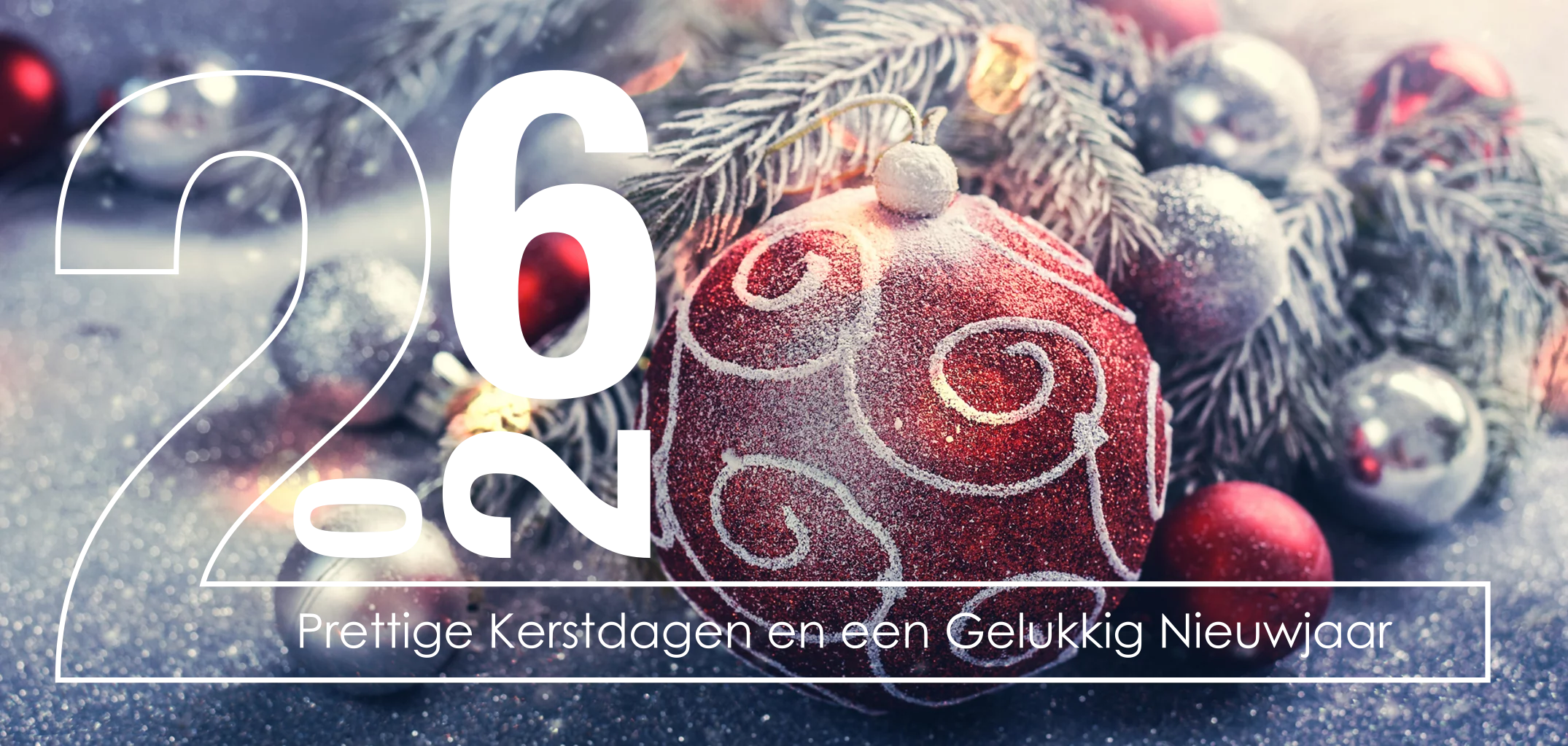 Zakelijk kerstkaart met 2026 in zilverfolie en mooie foto met rode en zilveren kerstballen. Natuurlijk wil je dit jaar een extra bijzondere kerstkaart sturen naar je zakenrelaties. Kies dan voor een kerstkaart met foliedruk, de glimmende folie geeft de kaart een extra sjieke uitstraling.