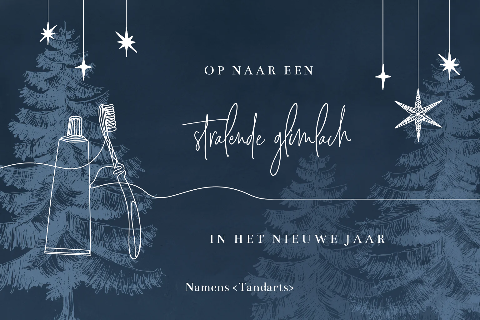 Deze originele zakelijke kerstkaart is speciaal ontworpen voor tandartsen en mondhygiënisten. Met de stijlvolle illustratie van een tandenborstel en tandpasta, gedrukt met goudfolie, wens je patiënten en relaties op een frisse en persoonlijke manier een stralende glimlach voor het nieuwjaar. Een professionele kerstkaart die perfect past bij een tandartspraktijk of mondzorgspecialist.