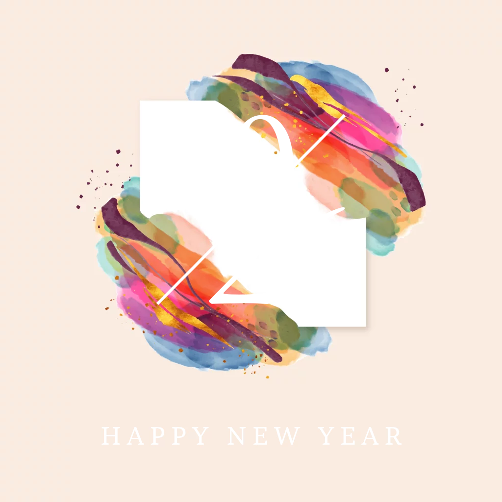 Kleurrijke nieuwjaarskaart met verf en goudfolie