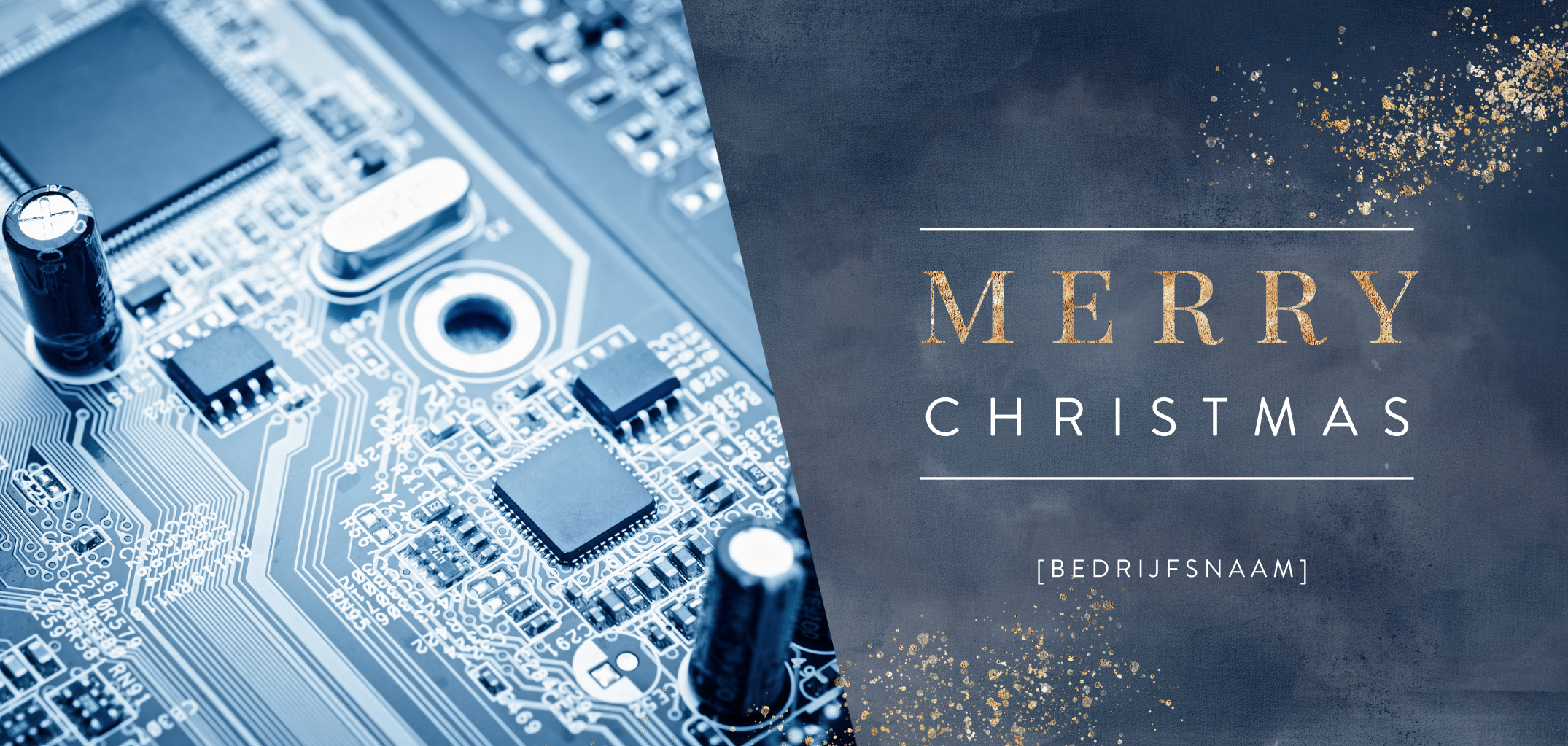 Op zoek naar een bijzondere kerstkaart? Kies voor dit stijlvolle ontwerp op panorama formaat en verstuur een uniek design naar al uw zakenrelaties. Deze kaart met donkerblauwe waterverf is versierd met goudkleurige spetters. Er is ruimte voor uw eigen foto, daarmee maakt u uw kerstkaart extra persoonlijk. Bent u benieuwd naar hoe uw kaart er in het echt uitziet? Bestel dan een drukproef