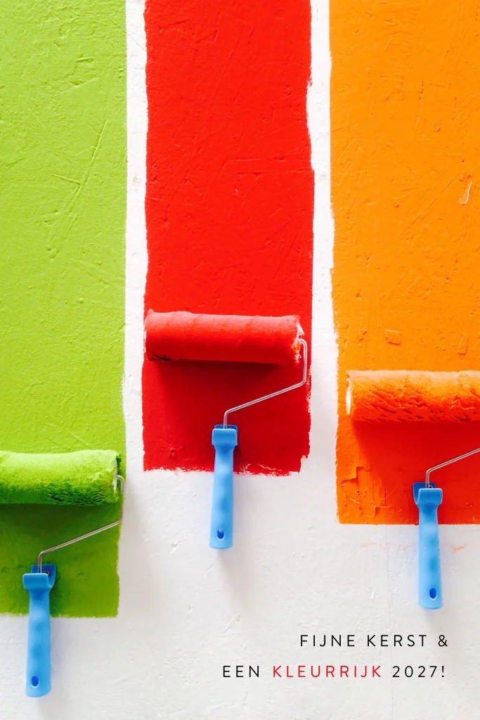 Kerstkaart voor schilders met kleurrijke verfrollers