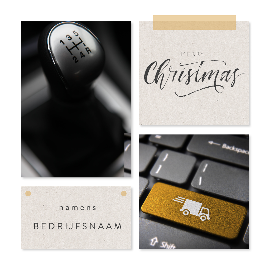 Kerstkaart transport met foto's vrachtwagen op toetsenbord