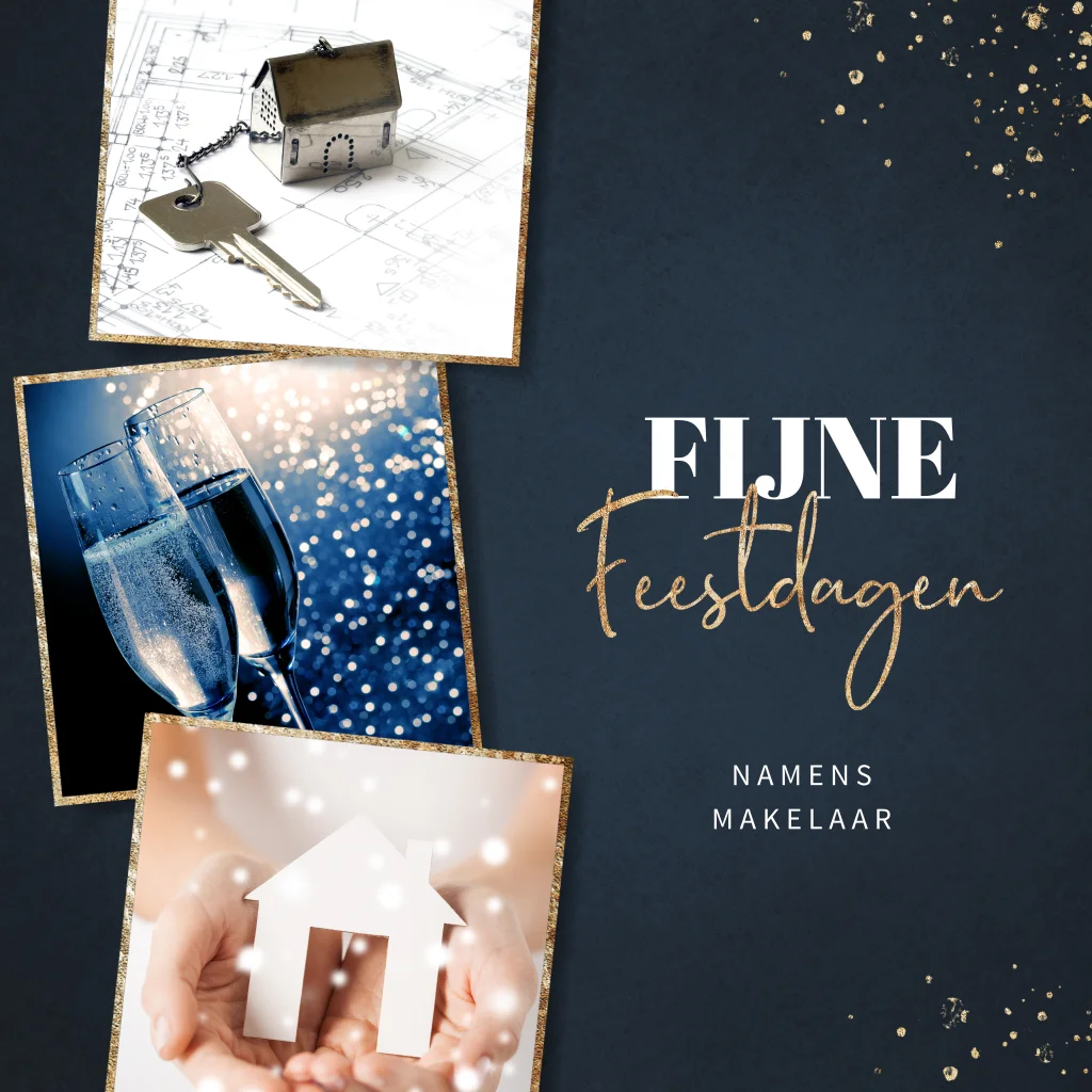 Donkerblauwe kerstkaart voor makelaars met fotokaders