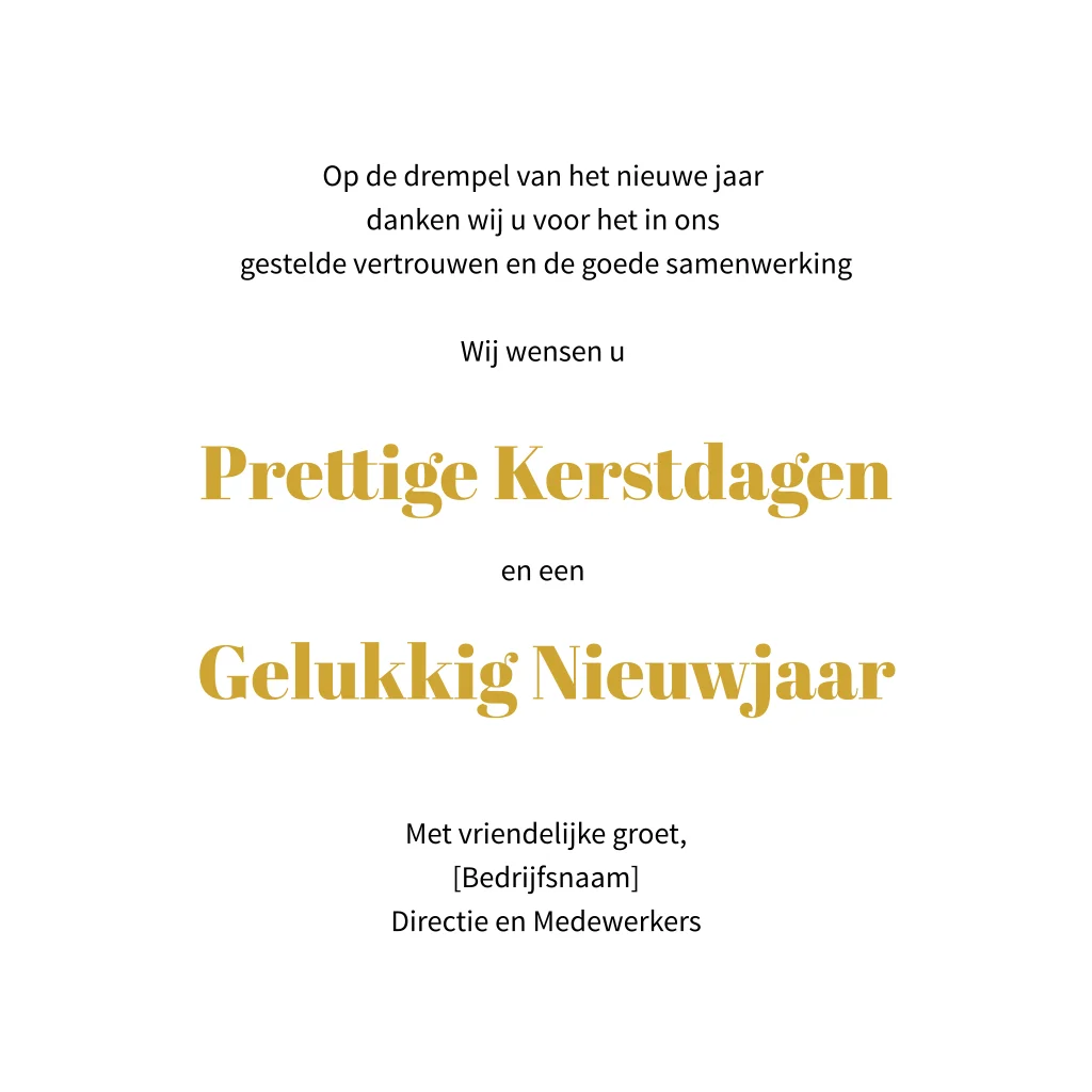 Een zakelijke kerstkaart voor de vastgoed sector met foto's in goudkleurige kaders, feestelijke spetters en sierlijke typografie. Een stijlvolle kaart met chique uitstraling. De foto's zijn eenvoudig in te wisselen voor eigen bedrijfsfoto's. Met deze kerstkaart wenst u in stijl uw zakelijke contacten prettige feestdagen toe.