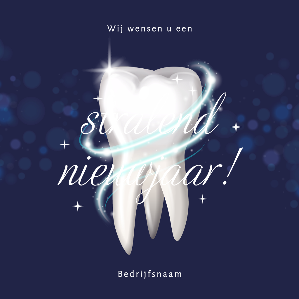 Breng dit feestelijke seizoen een stralende glimlach in uw zakelijke groeten met deze donkerblauwe kerstkaart voor tandartsen en tandheelkundige bedrijven. Deze kaart is ontworpen om uw waardering te tonen voor uw patiënten en partners, terwijl ze de verbinding tussen gezondheid en de vreugde van het seizoen benadrukken. In zilverfolie letters staat 'stralend nieuwjaar' geschreven.