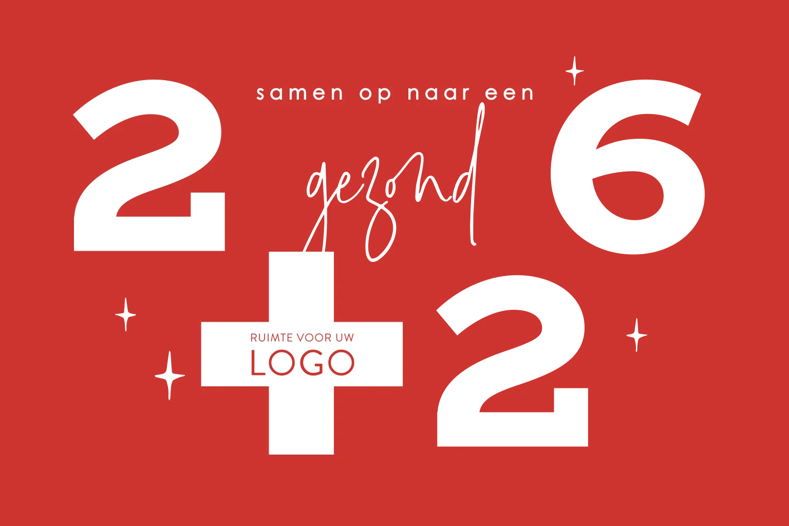 Rode kerstkaart met gezond nieuwjaar en eigen logo